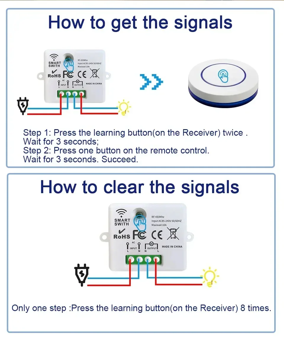 Step 2: Press one button on the remote control. Wait for 3 seconds. Succeed.How to clear the signals?