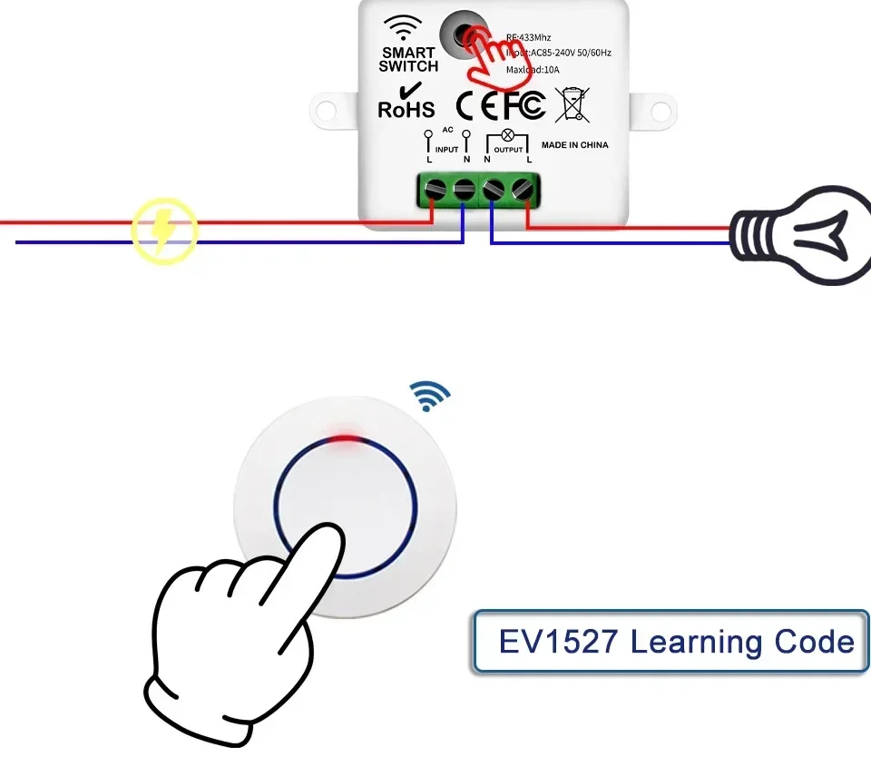 Step 1: Press the learning button(on the Receiver) twice . Wait for 3 seconds;